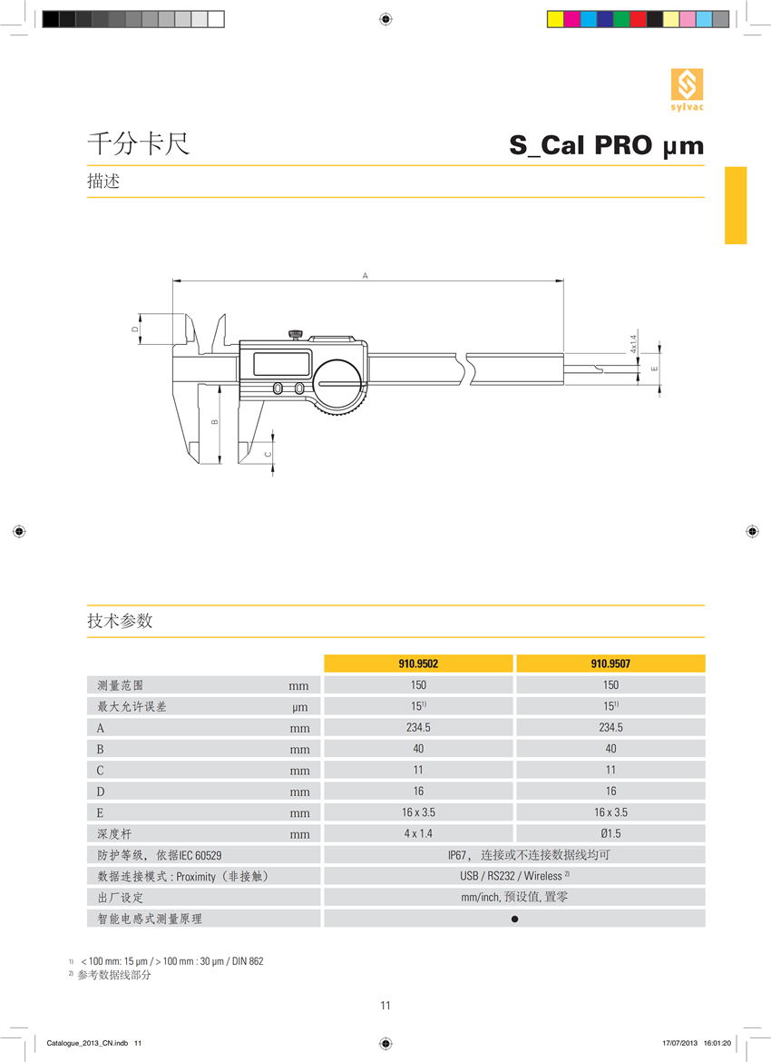 千分卡尺150mm 910.9507 S_Cal PRO μm規(guī)格參數(shù)Specs