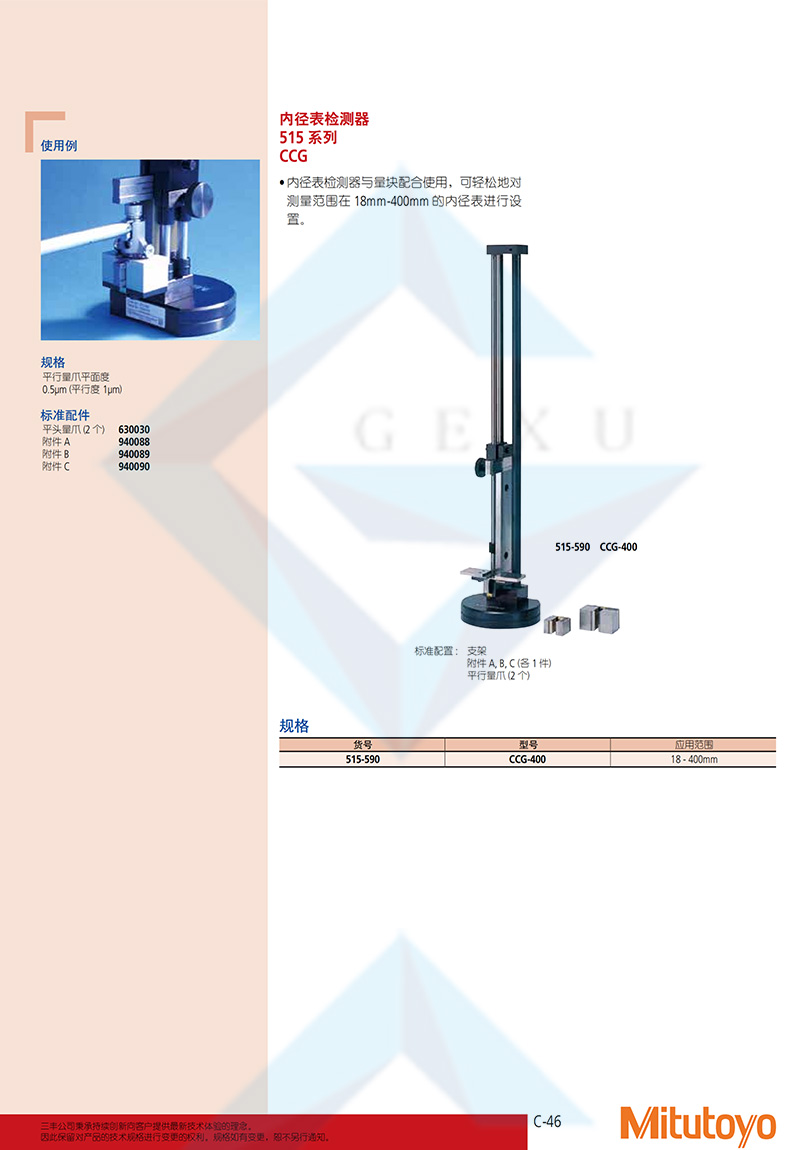 內(nèi)徑表檢測(cè)器515-590,CCG-400范圍18 - 400mm規(guī)格參數(shù)Specs