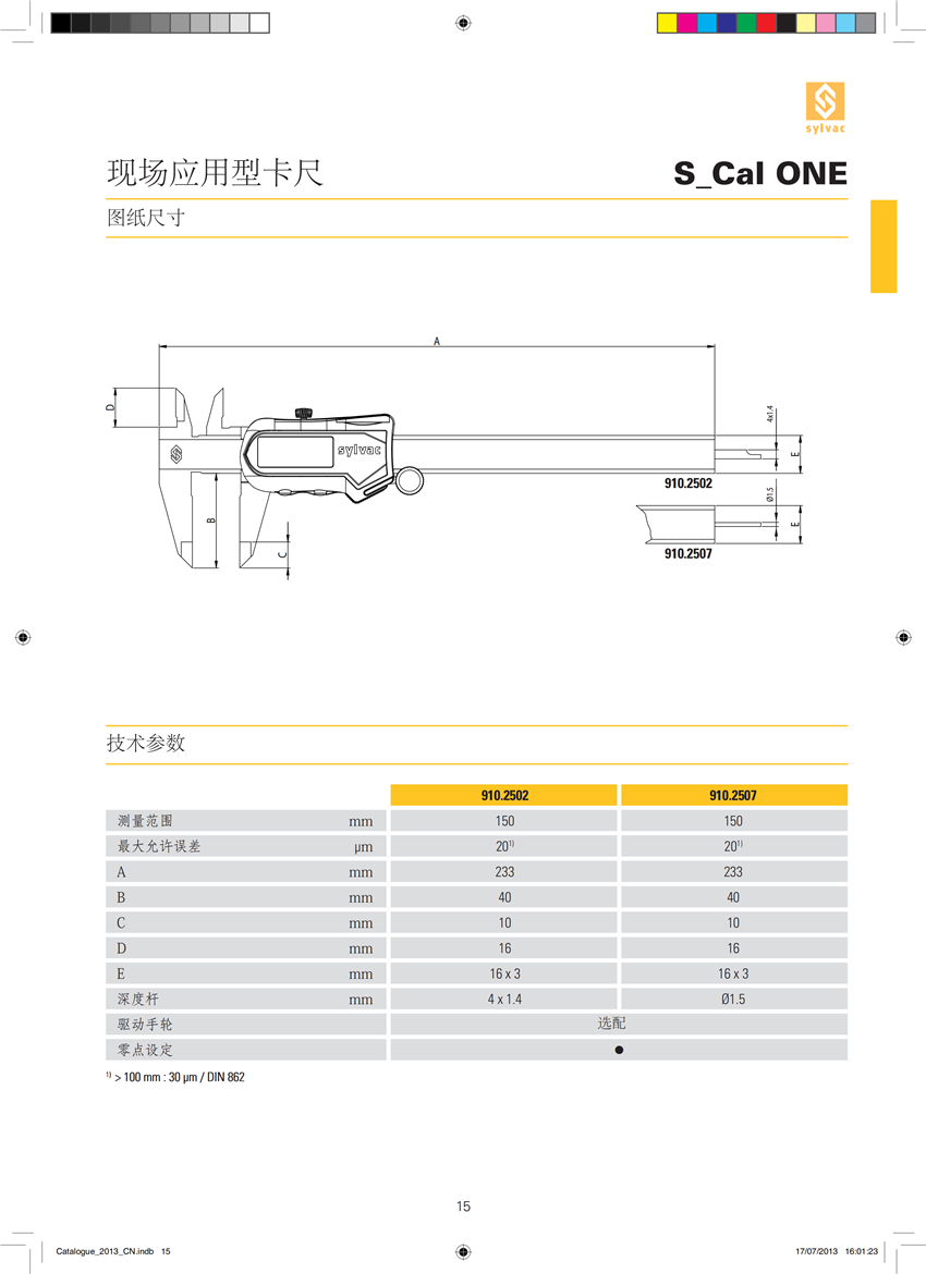 現(xiàn)場(chǎng)應(yīng)用型卡尺150mm910.2507 S_Cal ONE規(guī)格參數(shù)Specs