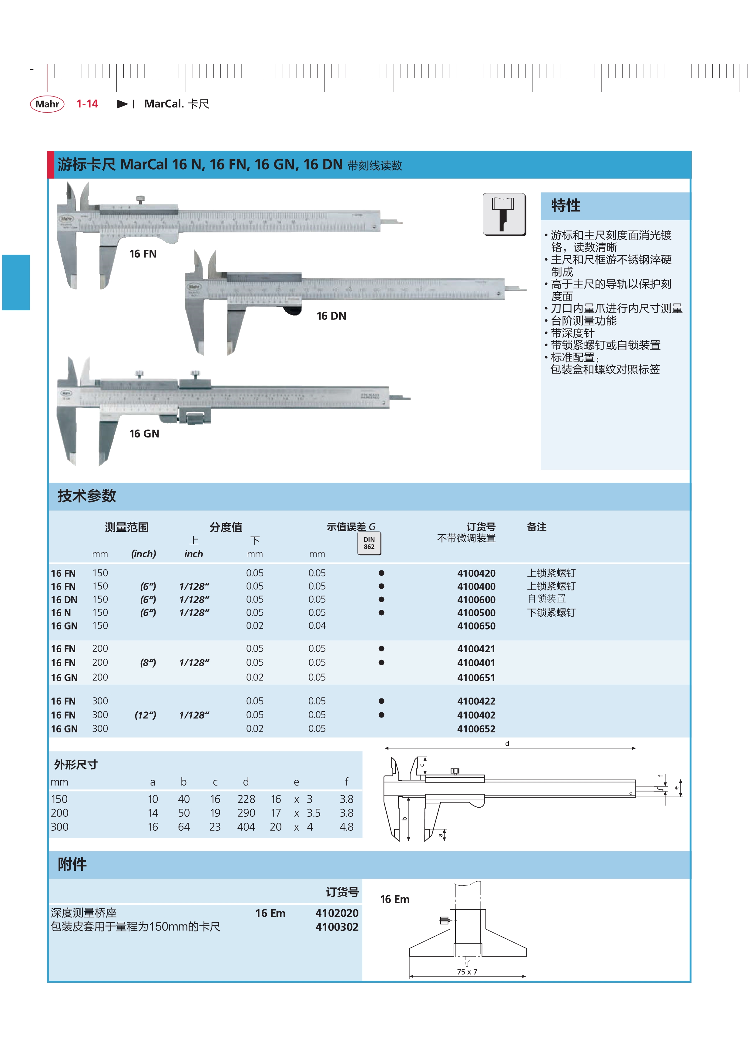 原裝德國馬爾Mahr16DN 量程0-150mm 精度0.05mm游標卡尺4100600規(guī)格參數(shù)Specs