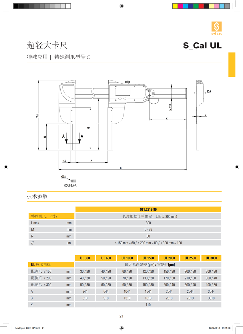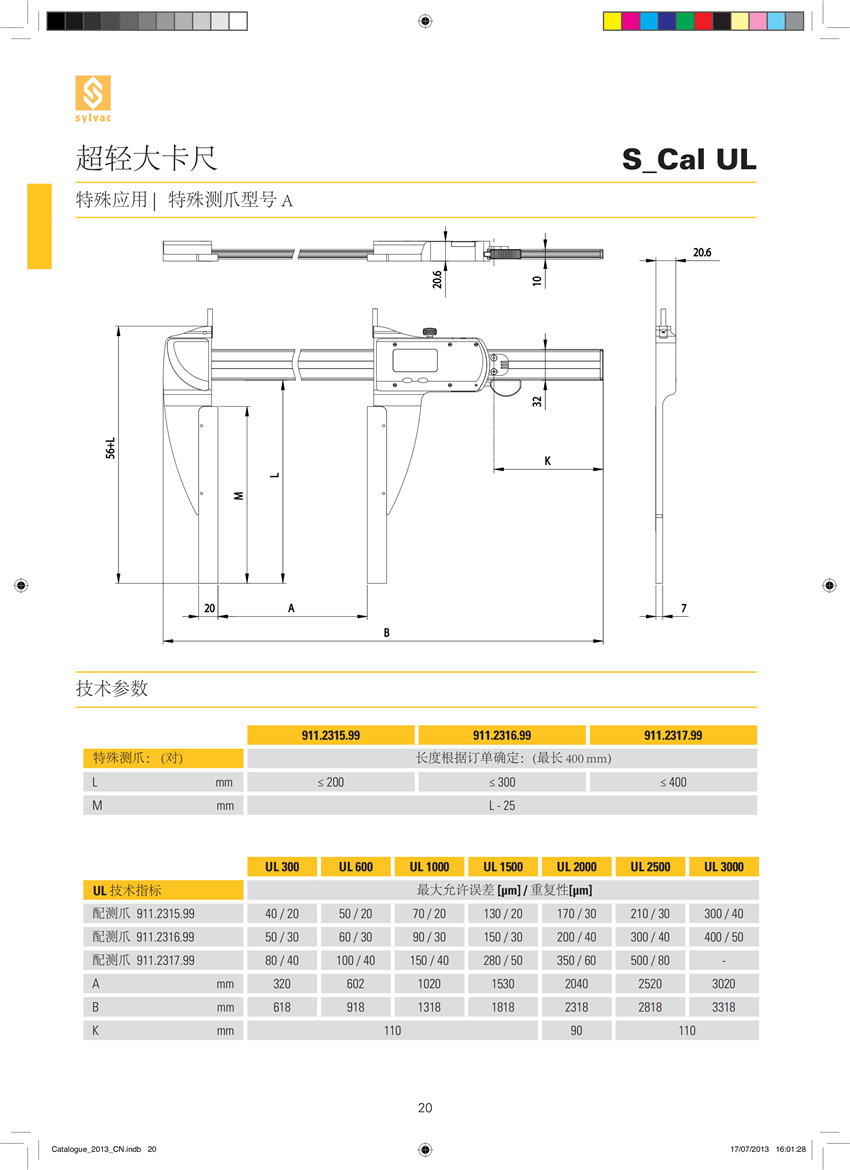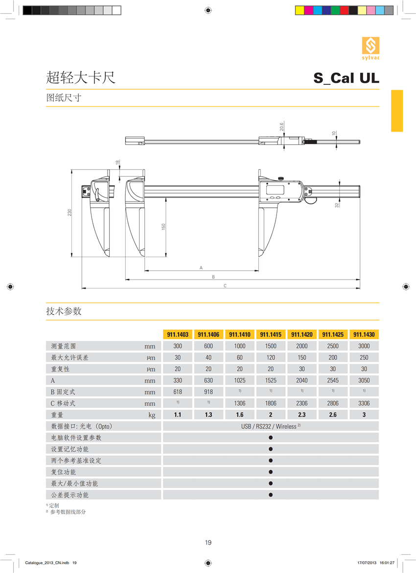 超輕大卡尺3000mm911.1430 S_Cal UL規(guī)格參數(shù)Specs