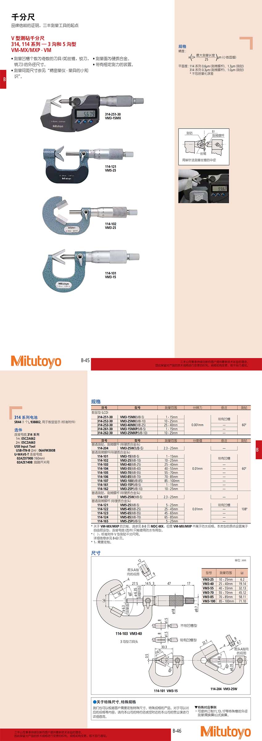 | 114-122 | VM5-45(MB-25) | 25 - 45mm | 0.01mm | — | 108o |