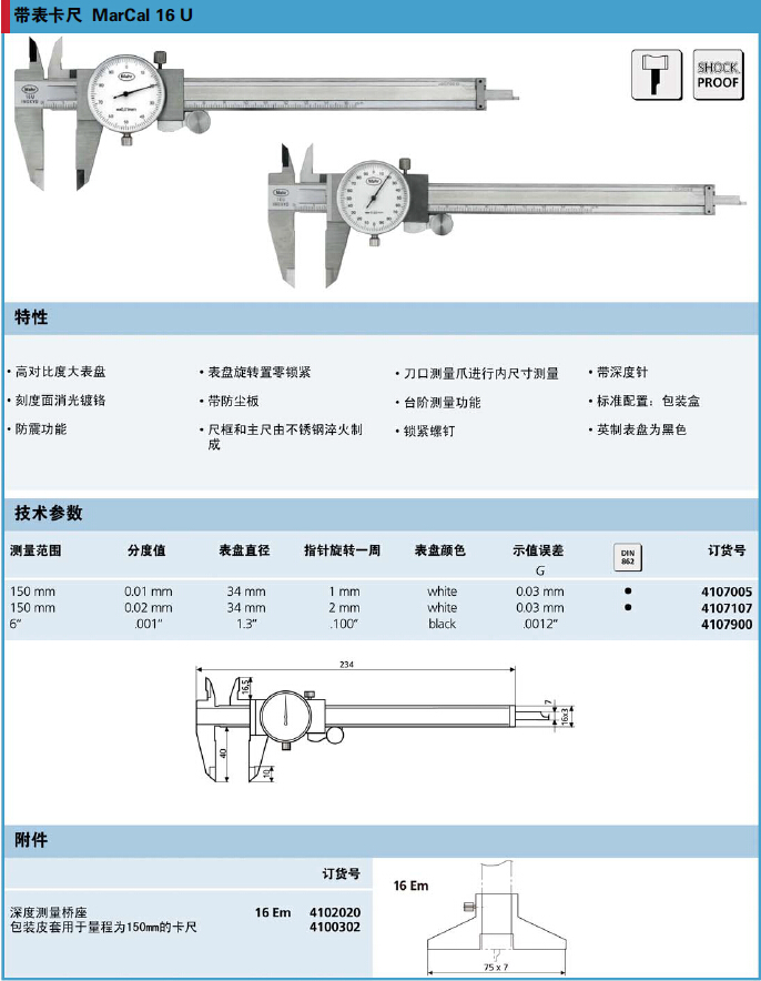 Mahr馬爾16U帶表卡尺 4107900規(guī)格參數(shù)Specs