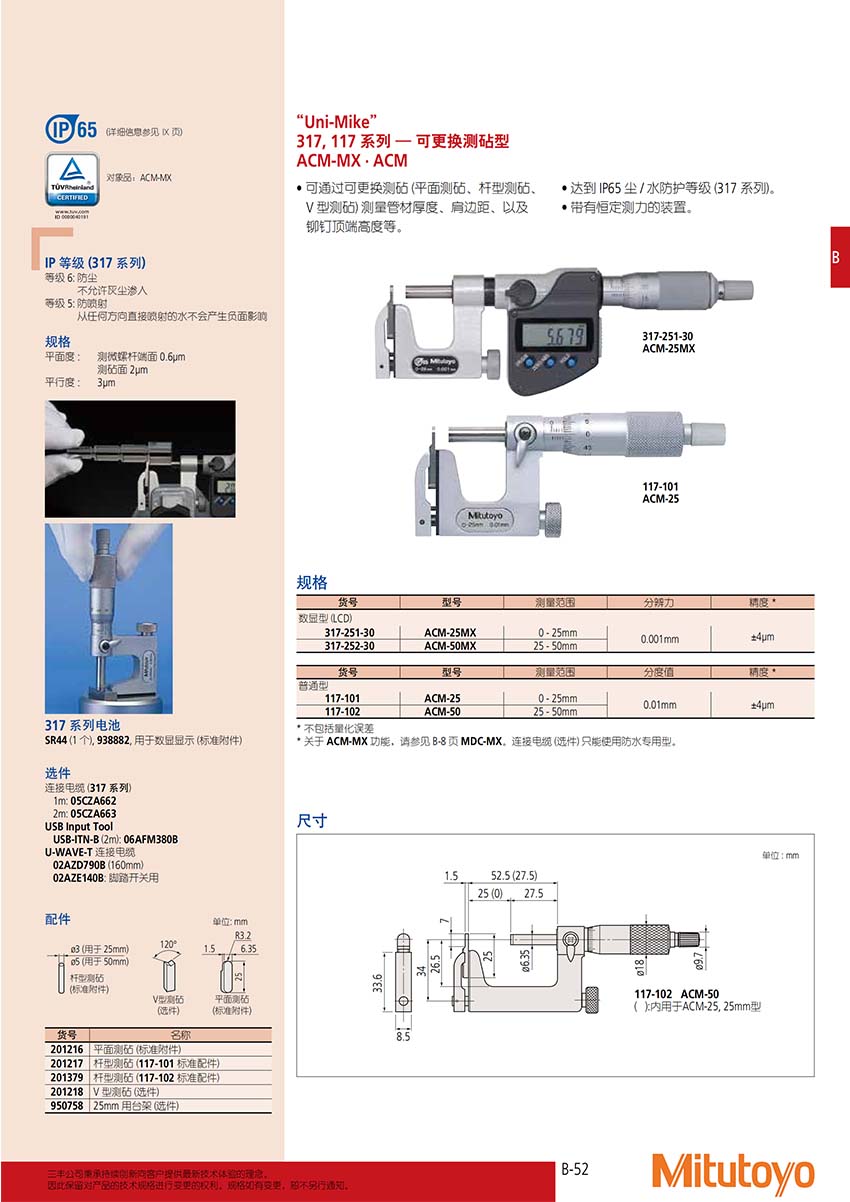 Uni-Mike” 317, 117 系列 0 - 25mm117-101規(guī)格參數(shù)Specs
