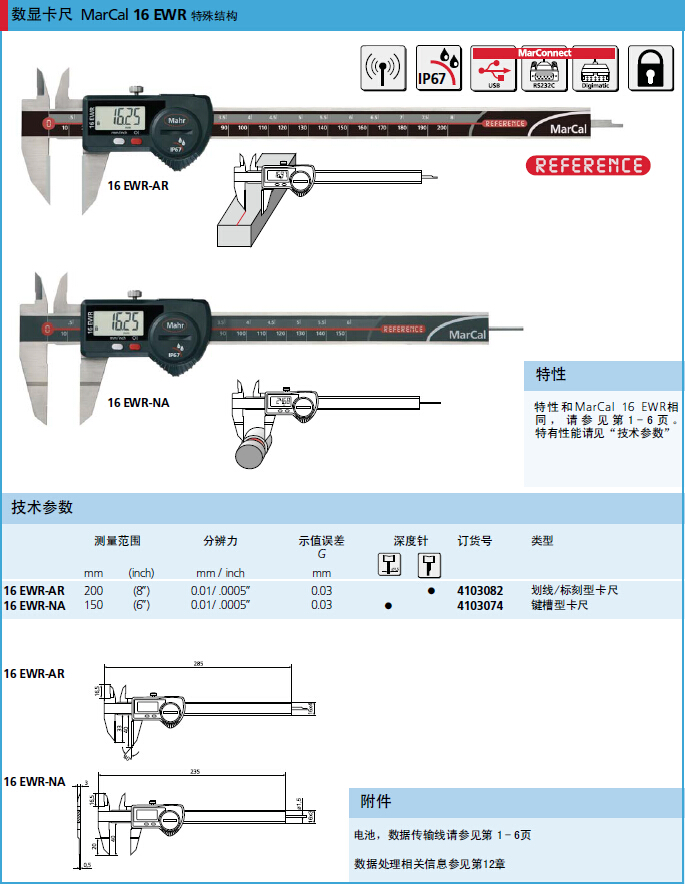 德國(guó)馬爾16EWR-AR數(shù)顯卡尺 0--150mm 4103074規(guī)格參數(shù)Specs