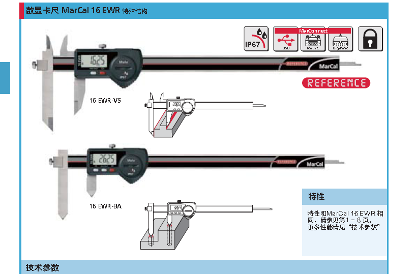 德國(guó)馬爾16EWR-AR數(shù)顯卡尺 0--200mm 4103083規(guī)格參數(shù)Specs