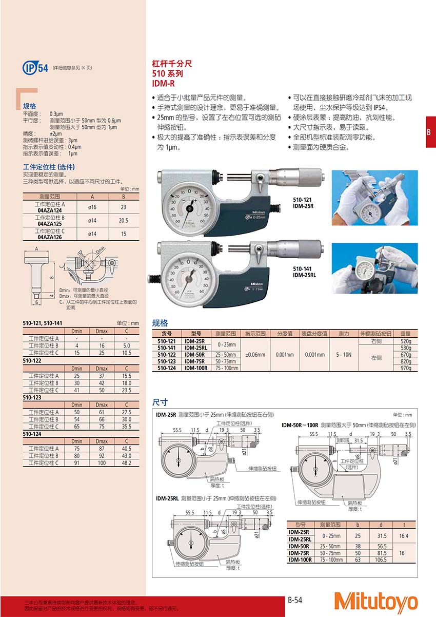 杠桿千分尺510 系列 |