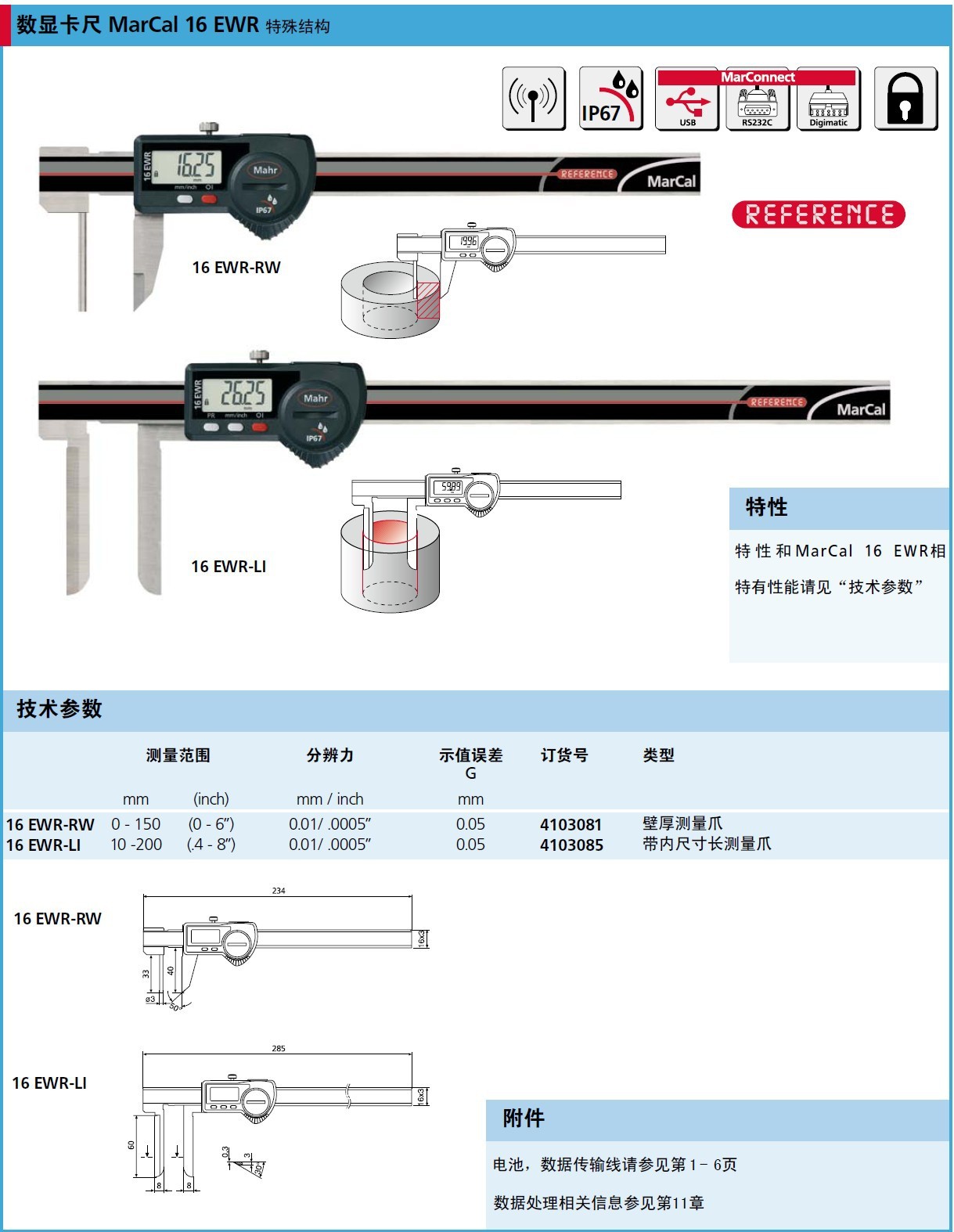 德國馬爾數(shù)顯卡尺16 EWR-SI 0--150mm 4103081規(guī)格參數(shù)Specs