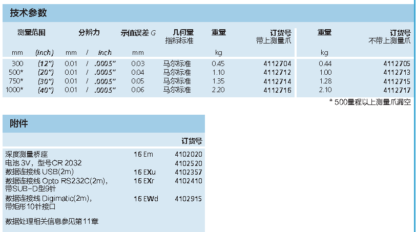 | 0--300mm | 0.01mm/.0005" | 0.03mm | 0.44kg | 4112705 | 無刀口測(cè)量爪 |