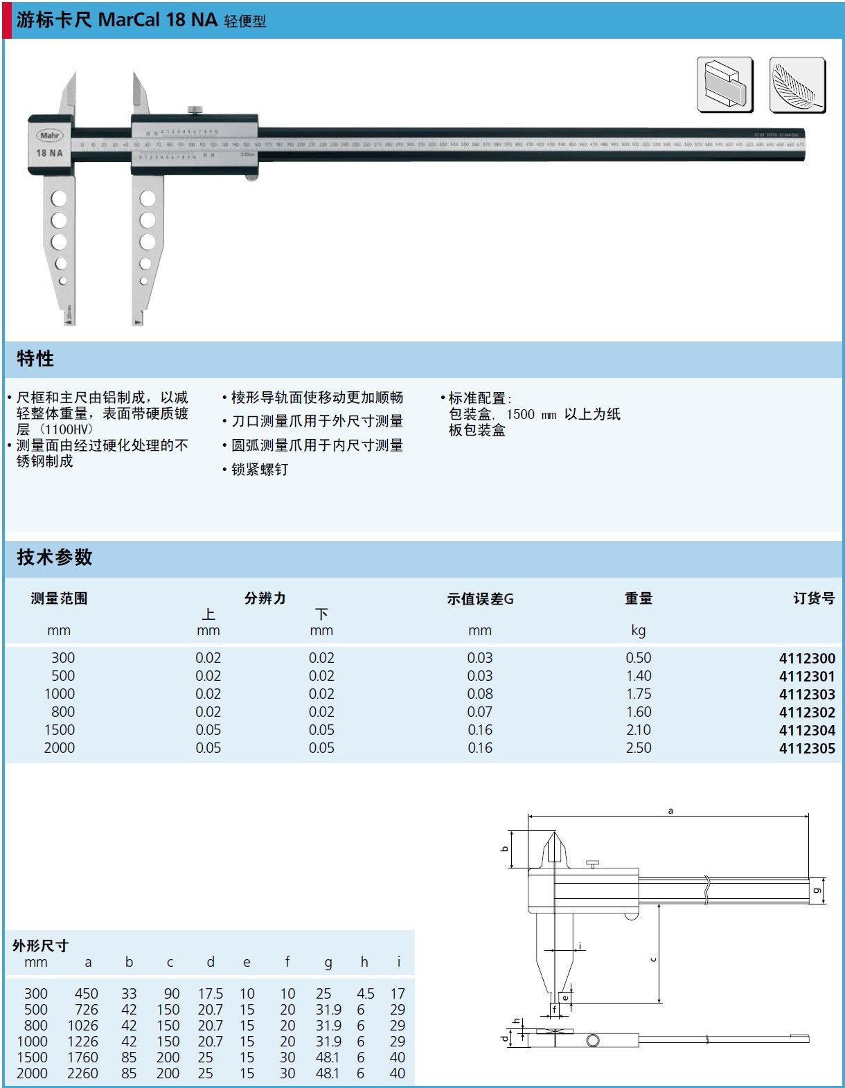 德國馬爾游標卡尺 18 NA 4112304 0--1500mm規(guī)格參數(shù)Specs