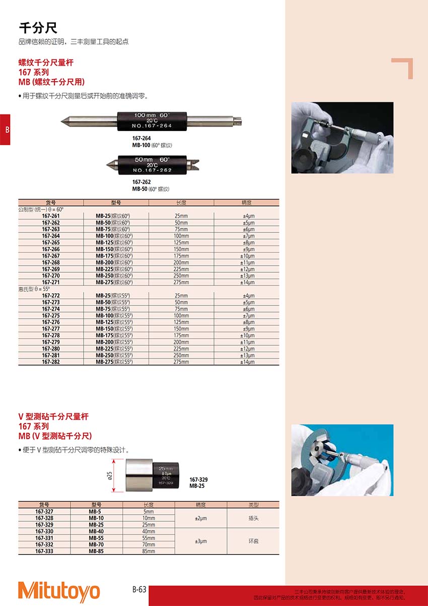 | 167-265 | MB-125(螺紋60o) | 125mm | ±8μm |