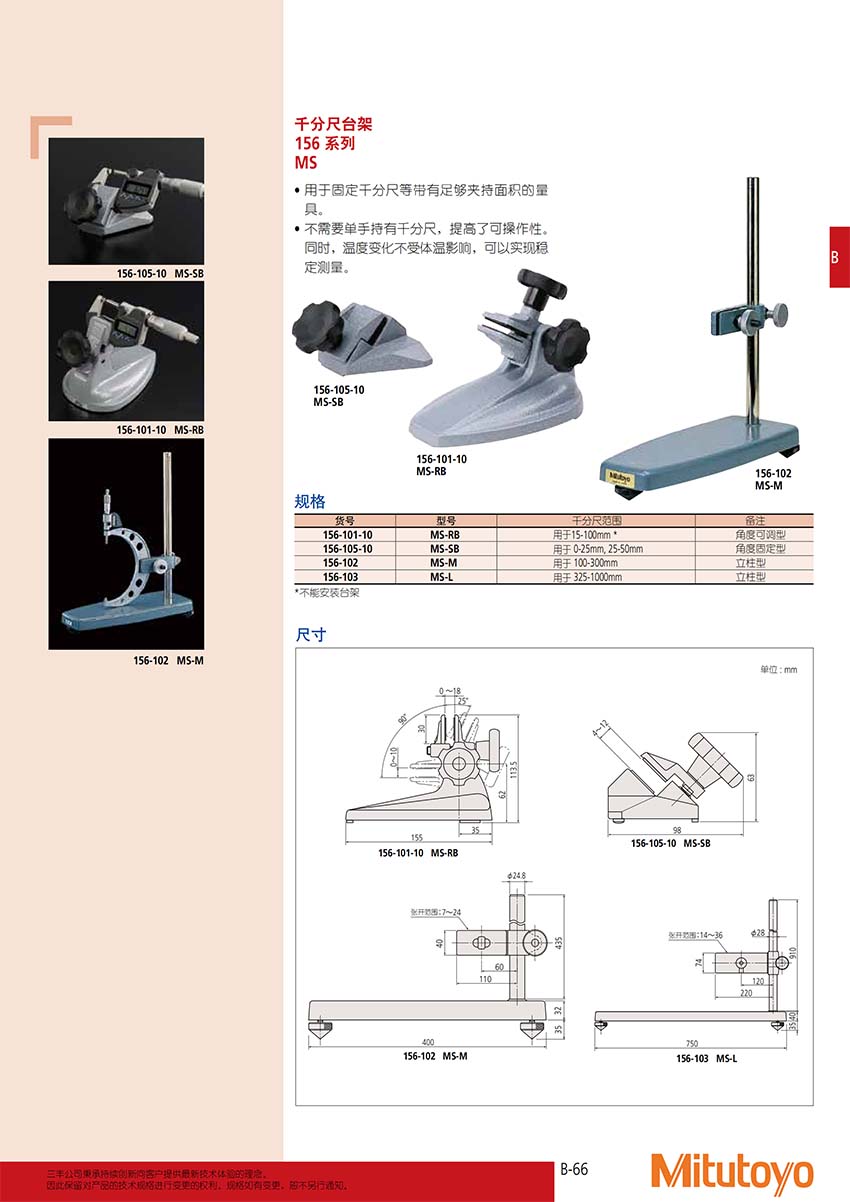 | 156-105-10 | MS-SB | 用于 0-25mm, 25-50mm | 角度固定型 |