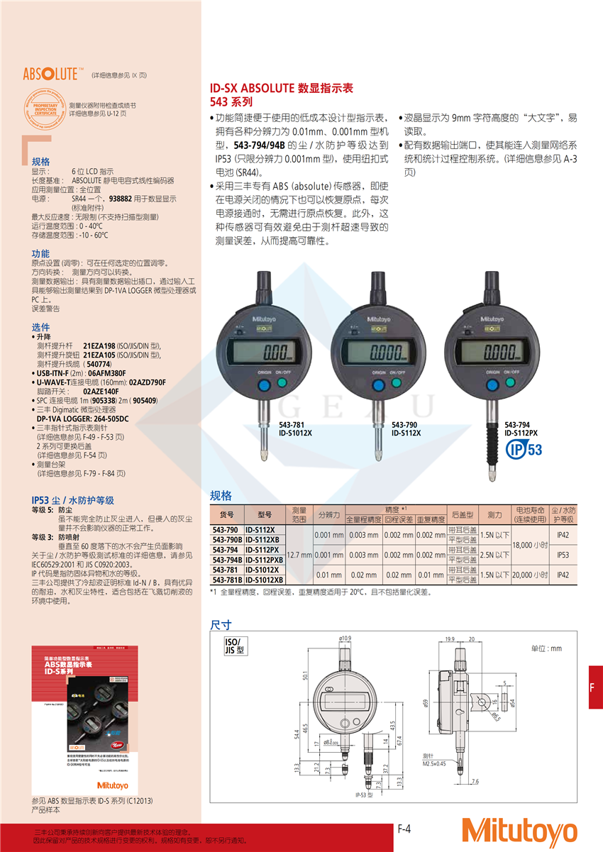 ID-SX ABSOLUTE 數(shù)顯指示表 543 系列 |
