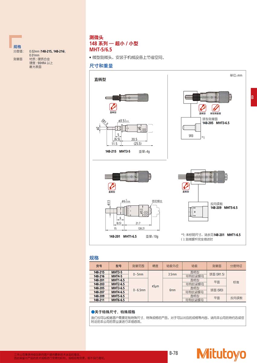 | 148-209 | MHT5-6.5 | 直柄型 | 平面 | 反向讀數(shù) | |||