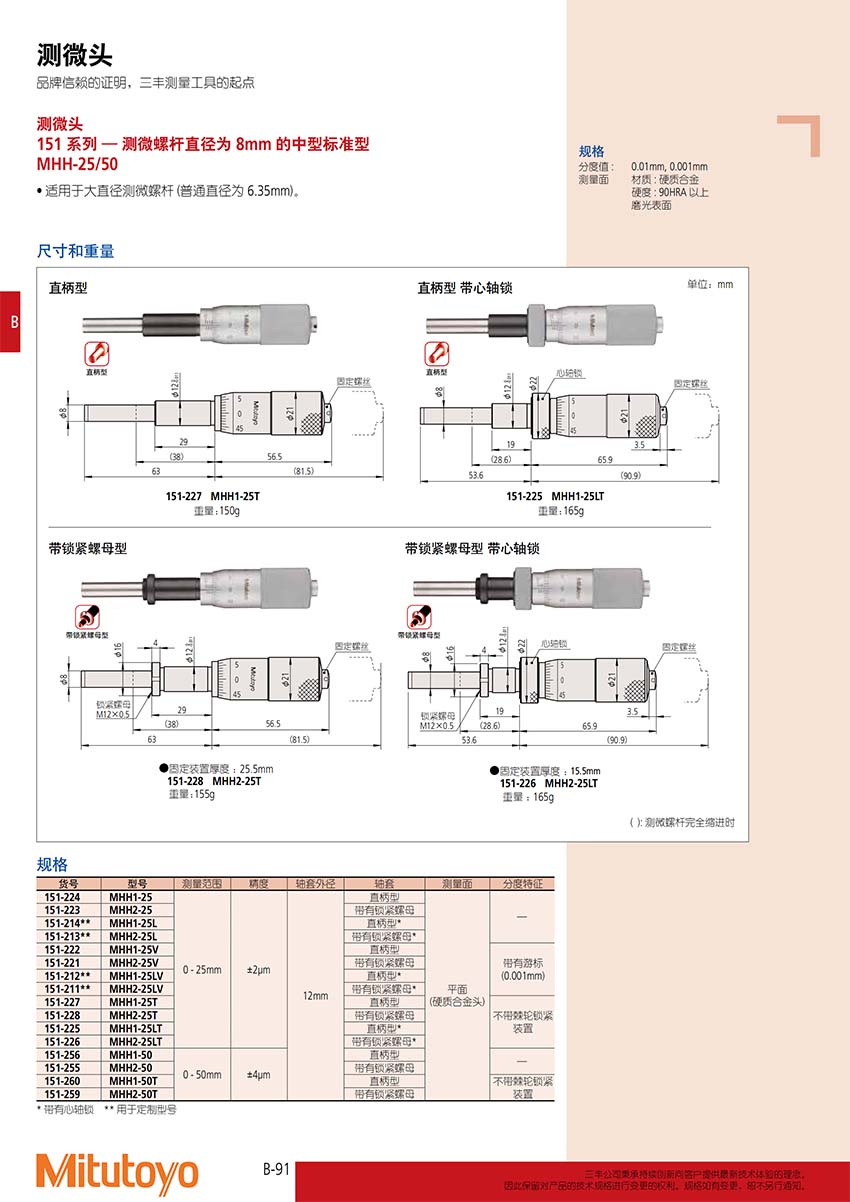 | 151-213** | MHH2-25L | ±2μm | 帶有鎖緊螺母* | ||||