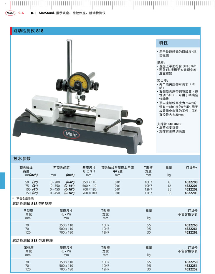 原裝德國(guó)馬爾跳動(dòng)檢測(cè)儀818系列 貨號(hào)4622203 頂軸線高度150mm規(guī)格參數(shù)Specs