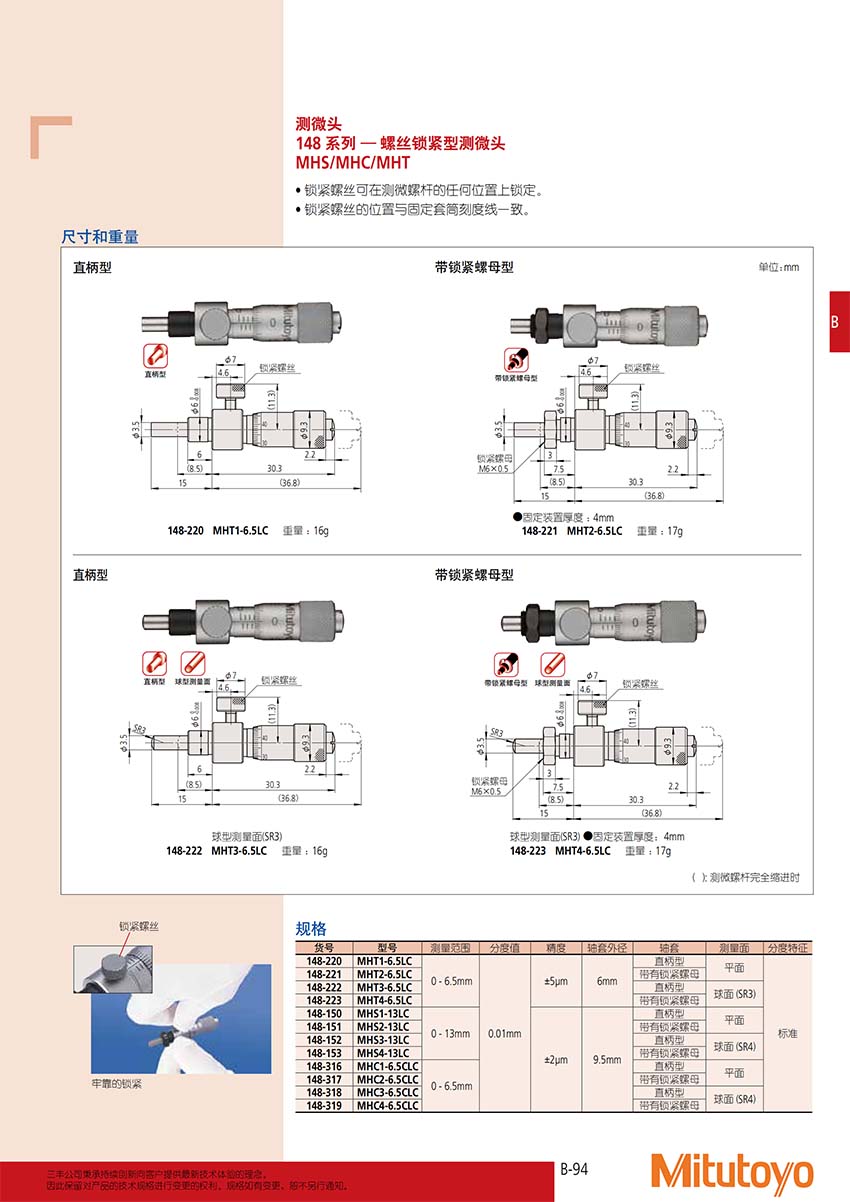 | 148-223 | MHT4-6.5LC | 帶有鎖緊螺母 | ||||||