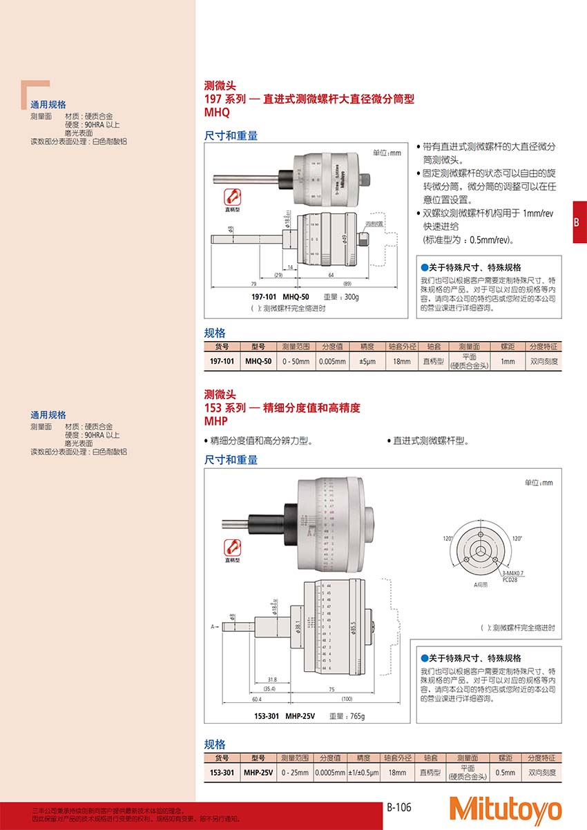 測(cè)微頭 197 系列 197-101規(guī)格參數(shù)Specs