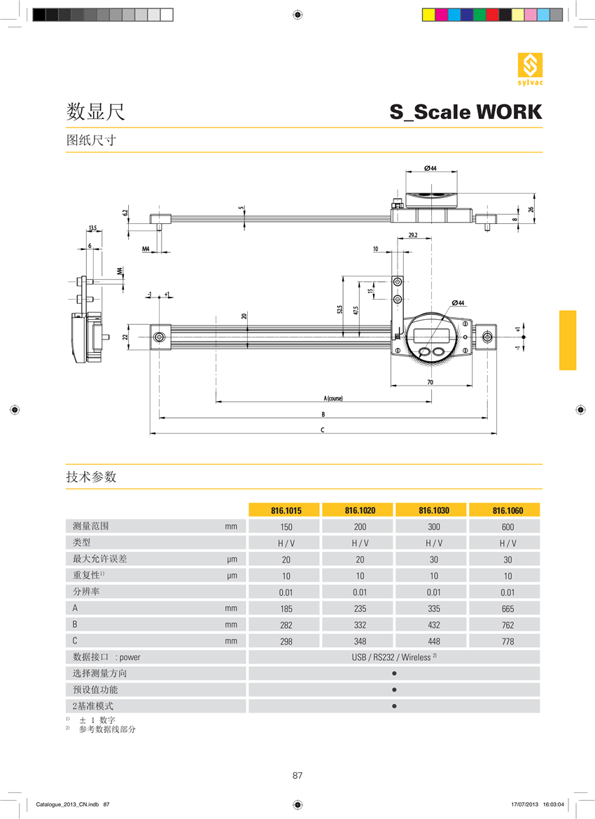 數(shù)顯尺200mm816.1020 S_Scale WORK規(guī)格參數(shù)Specs