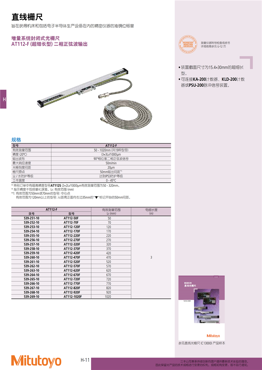 增量系統(tǒng)封閉式光柵尺50 - 1020mmAT112-F規(guī)格參數(shù)Specs