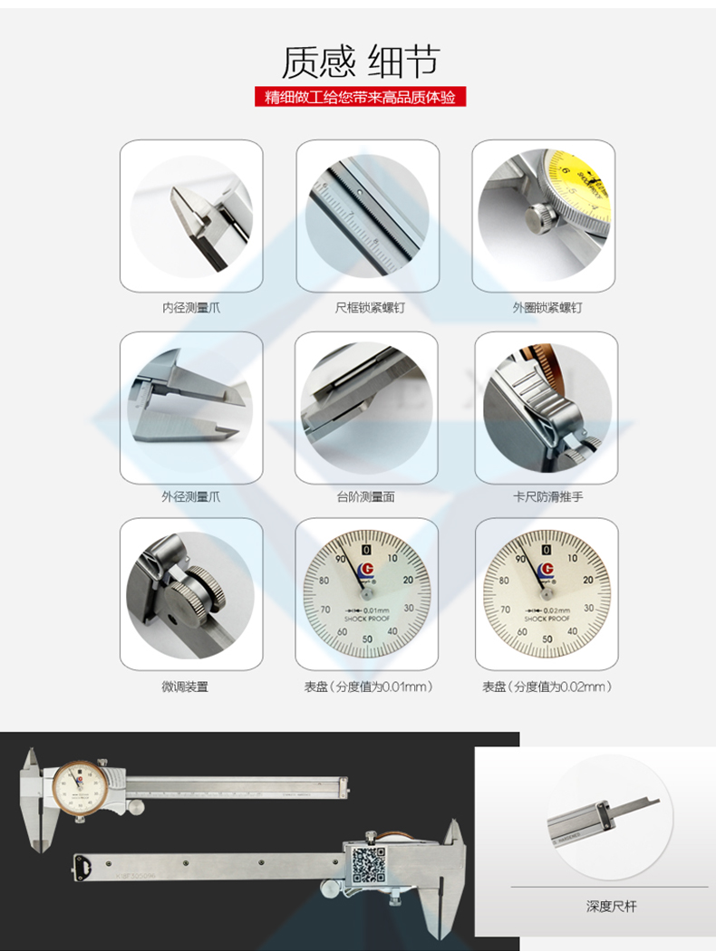 讀數(shù)清晰、直觀、精確,不銹鋼材質(zhì)制造,用于測(cè)量外徑、內(nèi)徑、孔深和臺(tái)階尺寸