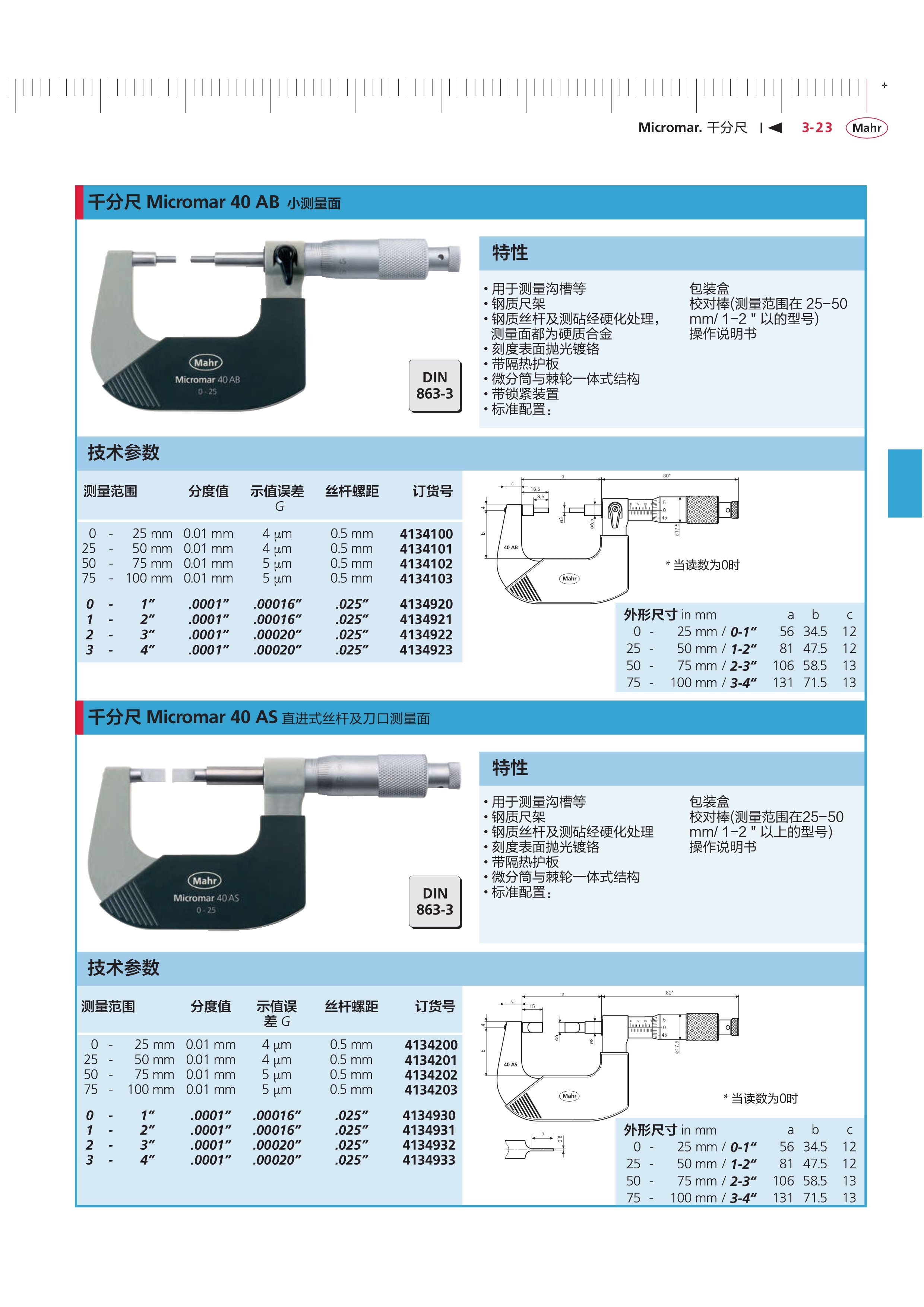德國馬爾Mahr直進式絲桿及刀口測量面千分尺40AS 3-4"(4134933)規(guī)格參數(shù)Specs