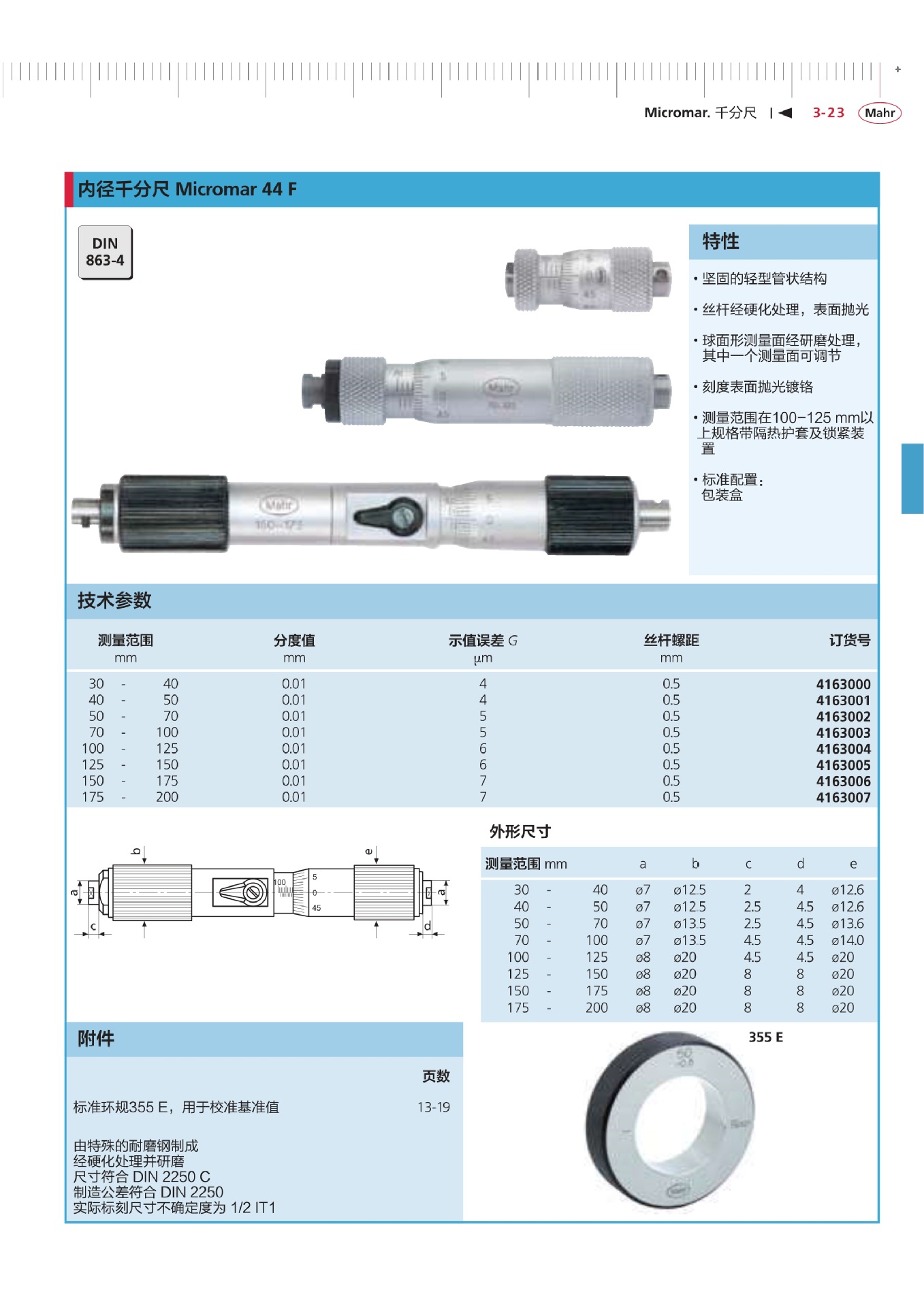 德國馬爾Mahr 輕型管狀結(jié)構(gòu) 內(nèi)徑千分尺44 F 40--50mm(4163001)規(guī)格參數(shù)Specs