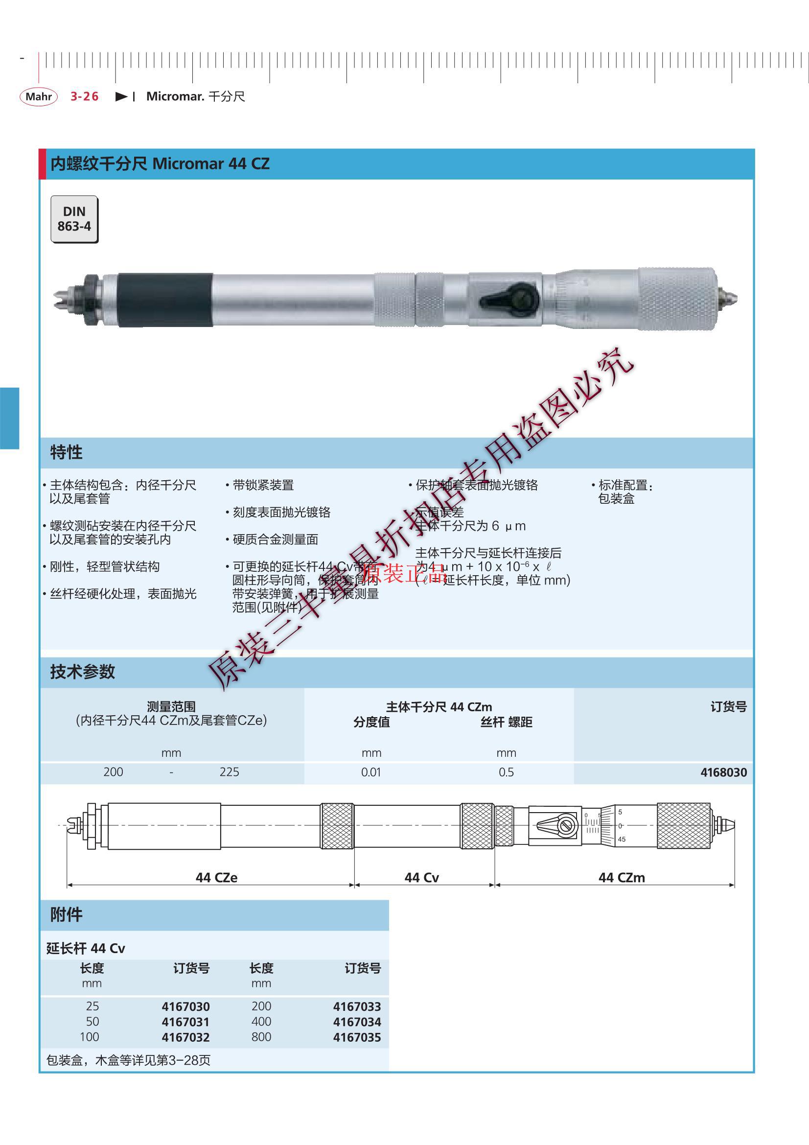 原裝德國馬爾Mahr內(nèi)螺紋千分尺 40 CZ 4168030包裝清單Detail