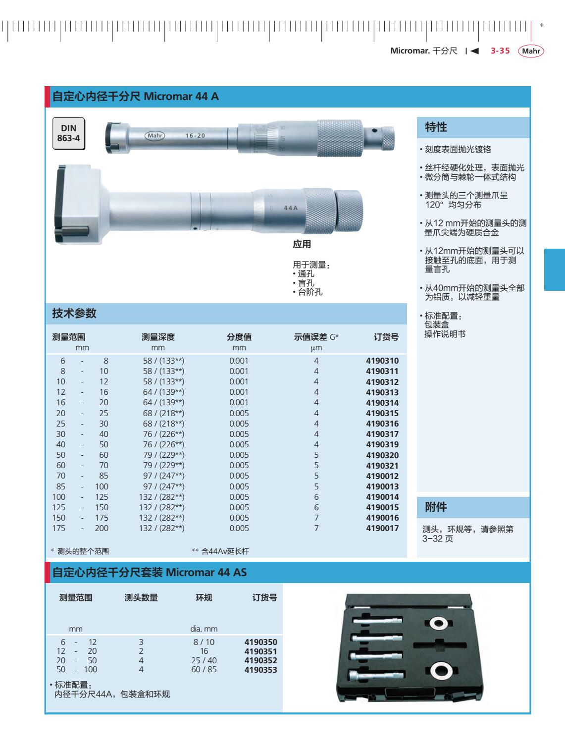 德國馬爾Mahr 自定心內徑千分尺 44A 機械刻度20--25mm 4190315規(guī)格參數(shù)Specs
