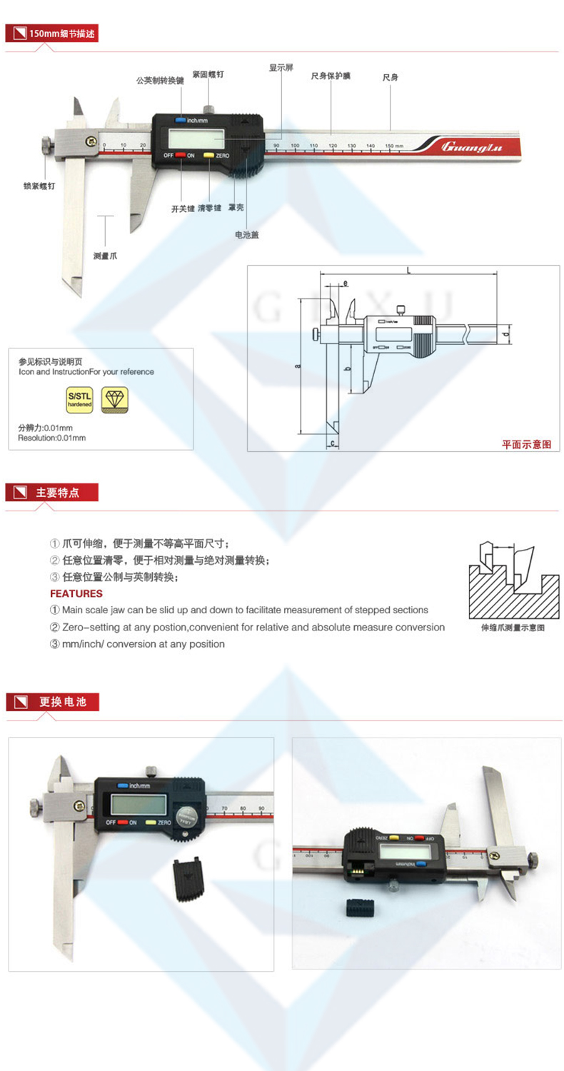 伸縮爪數(shù)顯卡尺117-101測量0-150規(guī)格參數(shù)Specs