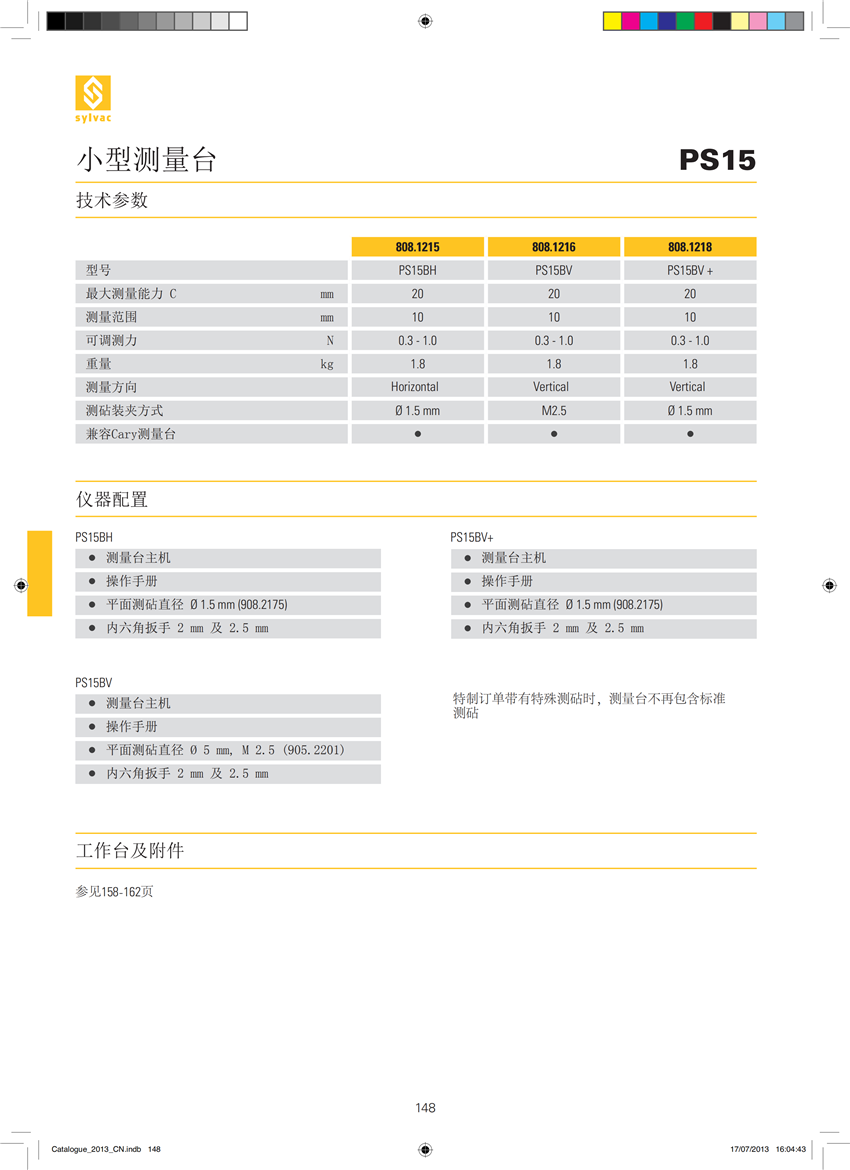 小型測量臺10mm 808.1216 PS15規(guī)格參數(shù)Specs