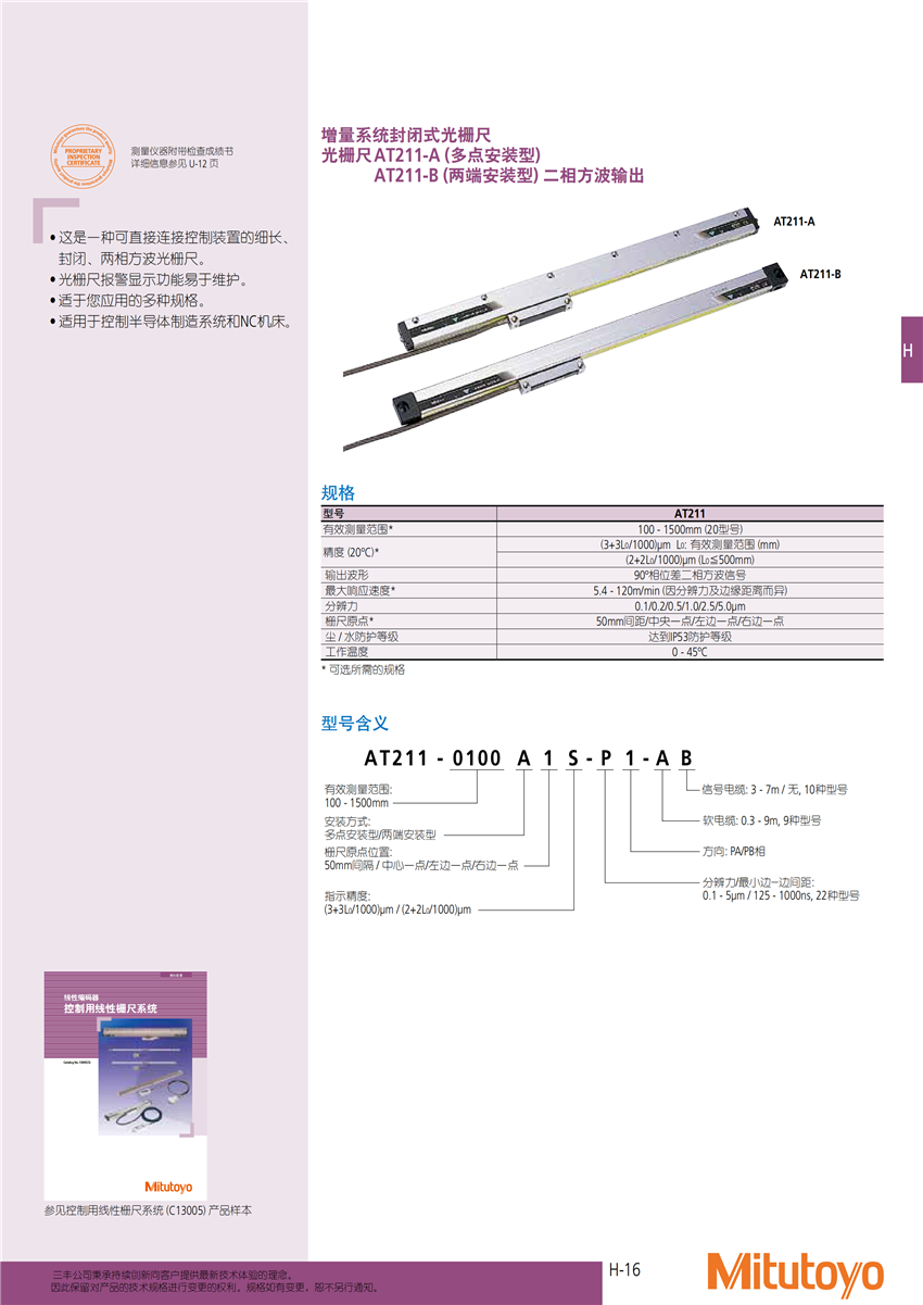 增量系統(tǒng)封閉式光柵尺100 - 1500mmAT211規(guī)格參數(shù)Specs