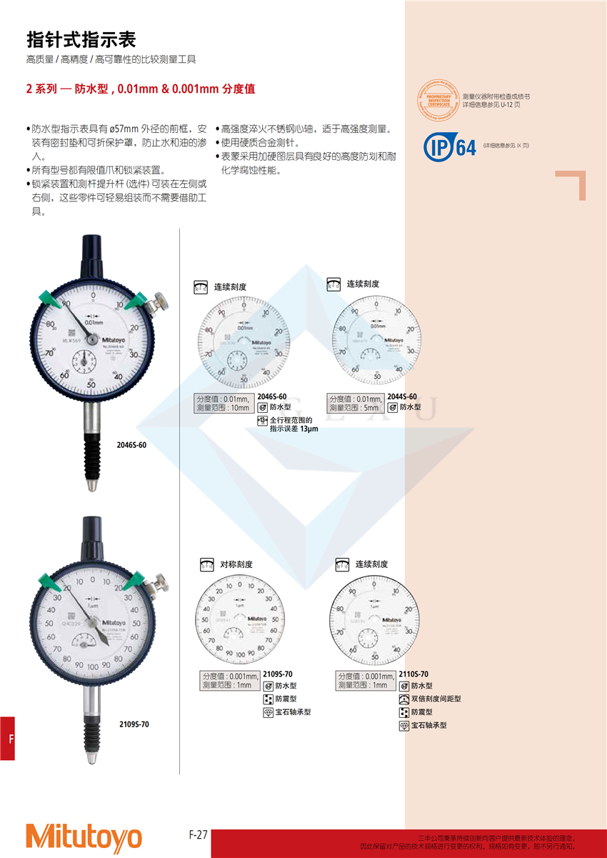 2 系列 — 防水型 , 0.01mm & 0.001mm 分度值 |