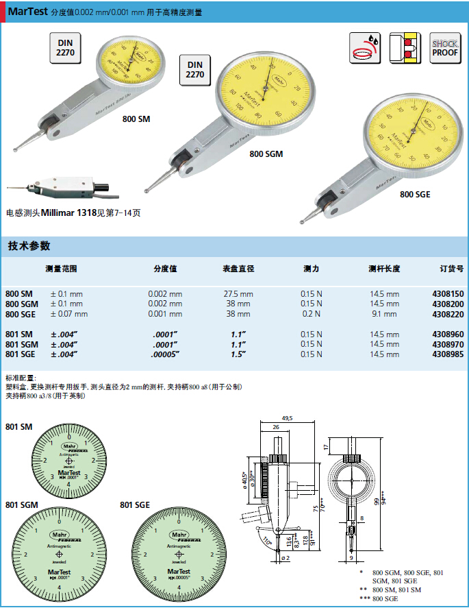 德國馬爾Mahr 高精度測量杠桿表 800SM 杠桿百分表4308985規(guī)格參數(shù)Specs