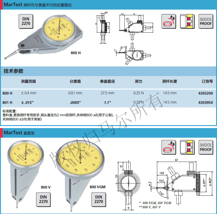 德國(guó)馬爾機(jī)械杠桿表 側(cè)面型 800H 0.4mm 4303950規(guī)格參數(shù)Specs