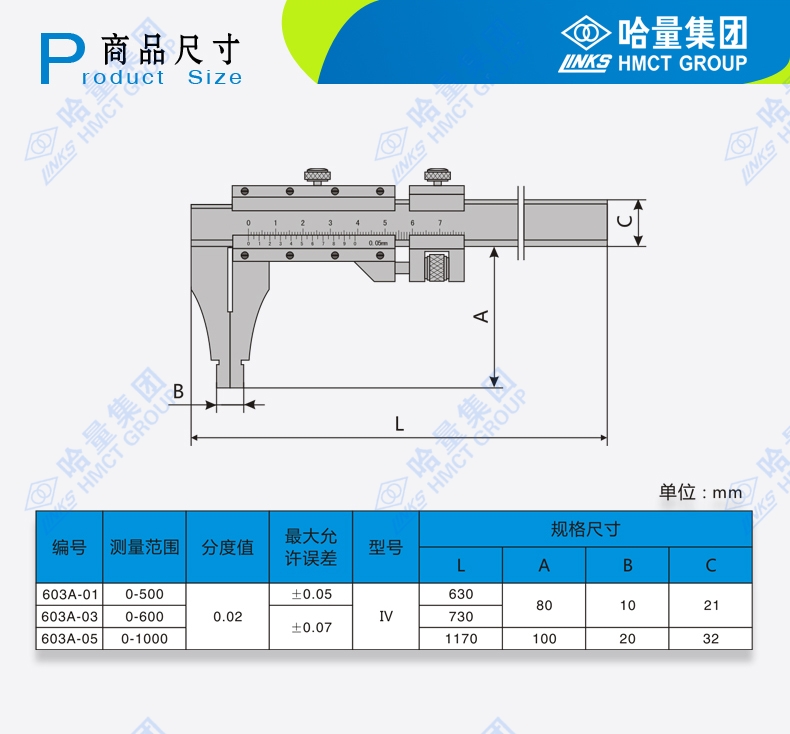 哈量機(jī)械游標(biāo)卡尺603系列 高精度 0--500mm 603A-01規(guī)格參數(shù)Specs