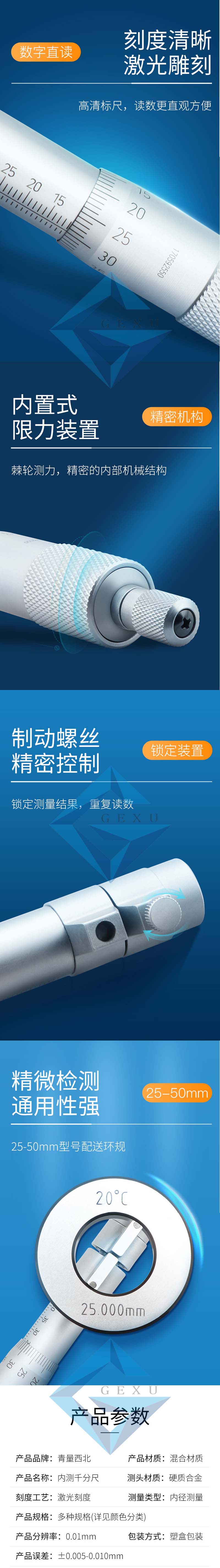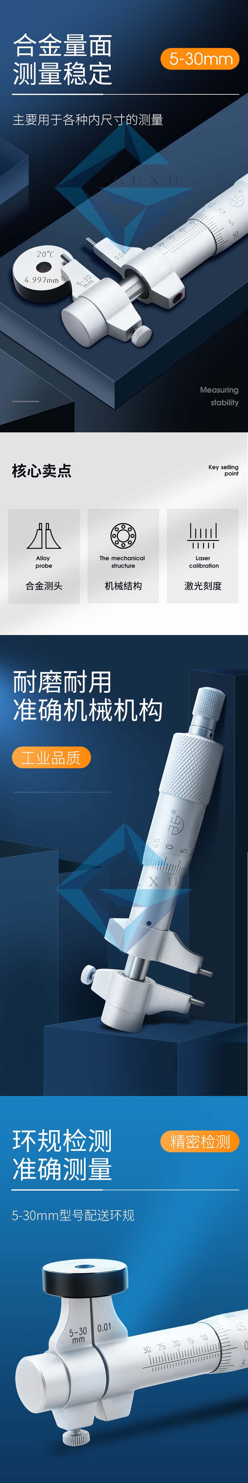 用于各種內(nèi)尺寸的測量; 5-30mm、25-50mm規(guī)格配備環(huán)規(guī); 分辨率:0.01mm;棘輪測力
