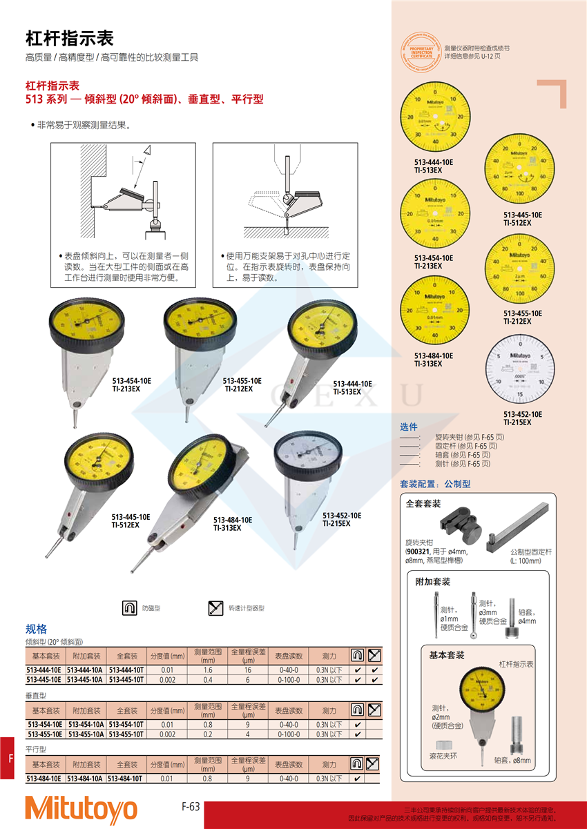 杠桿指示表 513 系列 —傾斜型 (20o 傾斜面) 1.6(mm) 513-444-10E售后保障Terms