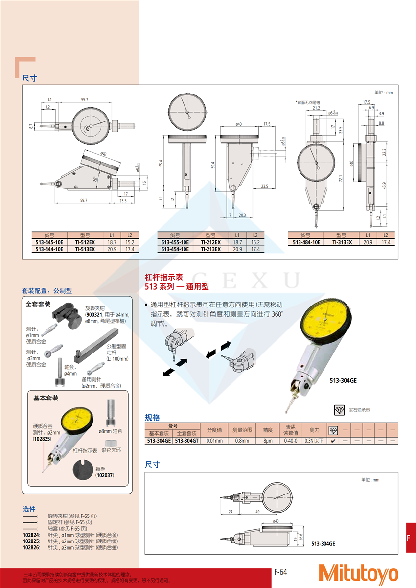 杠桿指示表 513 系列 — 通用型 0.8(mm) 513-304GE售后保障Terms