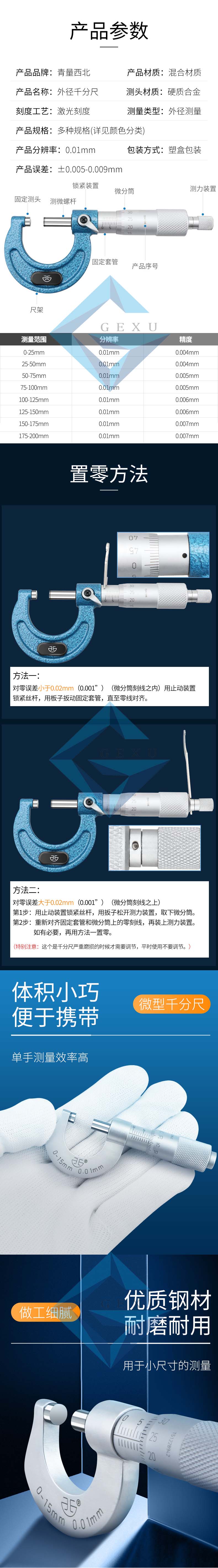 青量精鑄尺架外徑千分尺125-150mm106-06-000包裝清單Detail