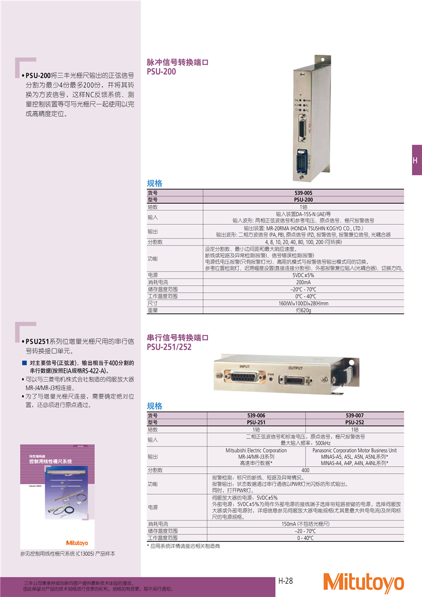 可以與三菱電機(jī)株式會(huì)社制造的伺服放大器MR-J4/MR-J3相連接;為了與增量光柵尺連接,需要確定絕對(duì)位置,還必須進(jìn)行原點(diǎn)通過(guò)