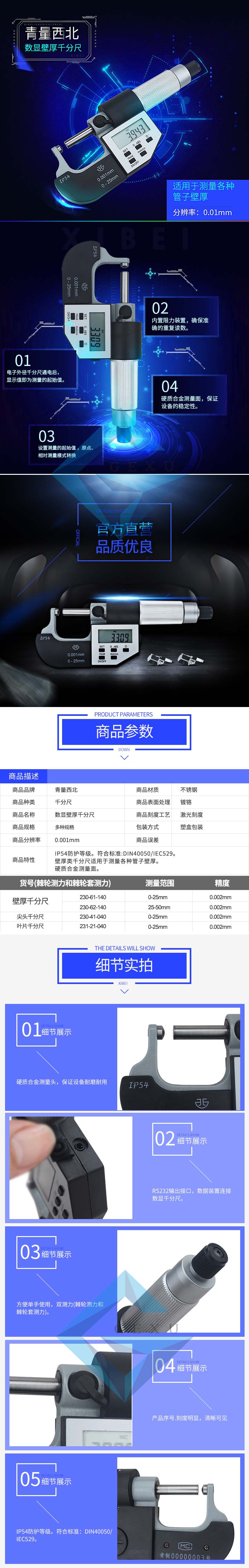 青量五鍵電子厚壁千分尺25-50mm230-62-140包裝清單Detail