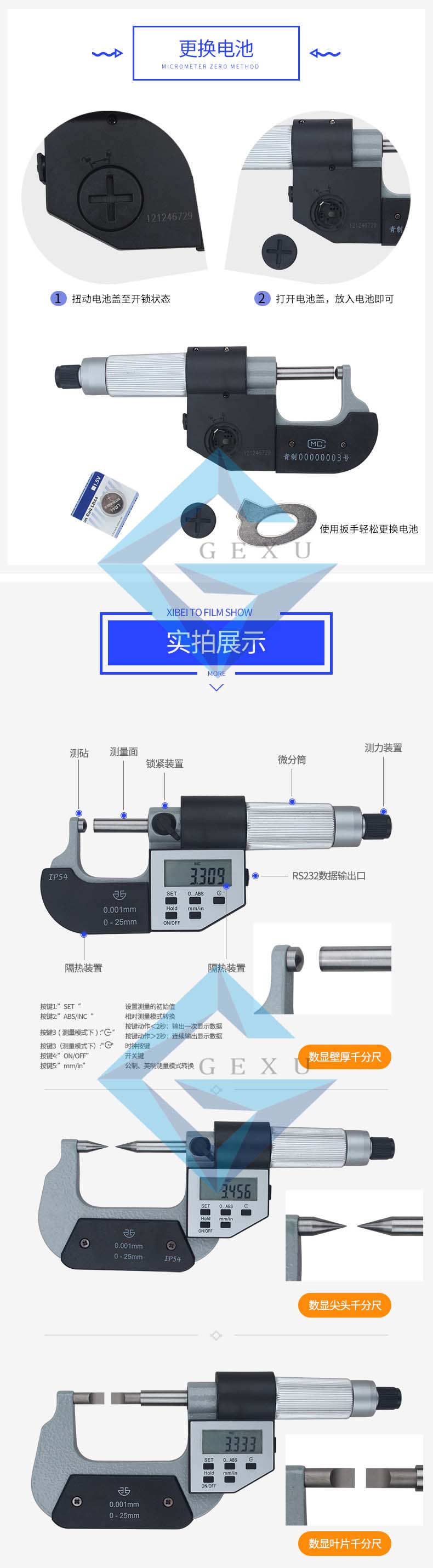 青量五鍵電子厚壁千分尺25-50mm230-62-140規(guī)格參數(shù)Specs