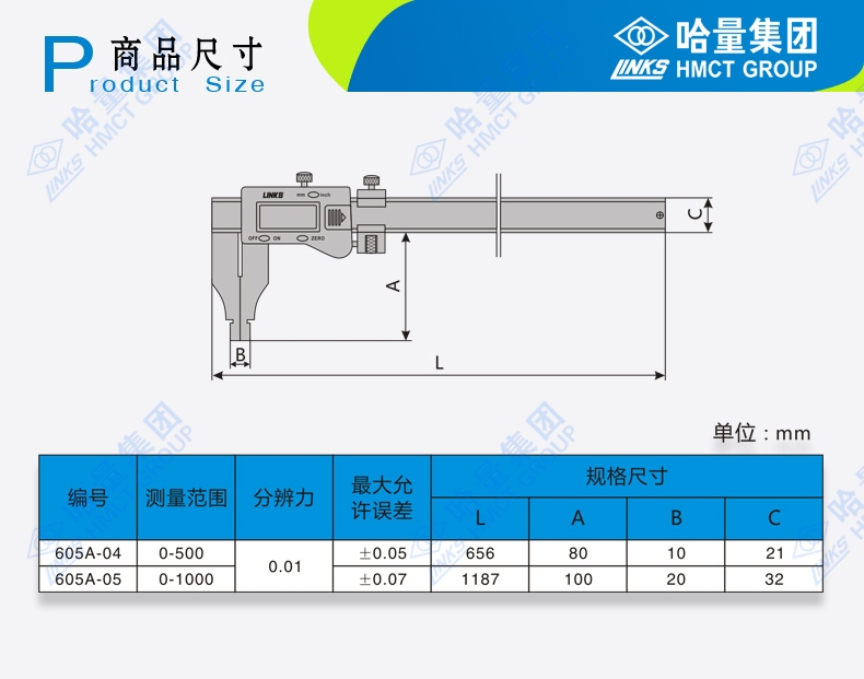 哈量電子數(shù)顯卡尺605A系列 高精度0-150mm 605A-01規(guī)格參數(shù)Specs