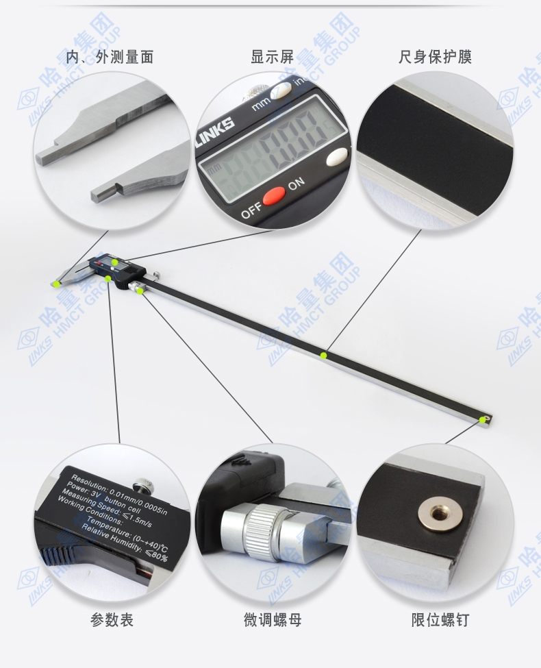 哈量電子數(shù)顯卡尺605A系列 高精度0-300mm 605A-07規(guī)格參數(shù)Specs