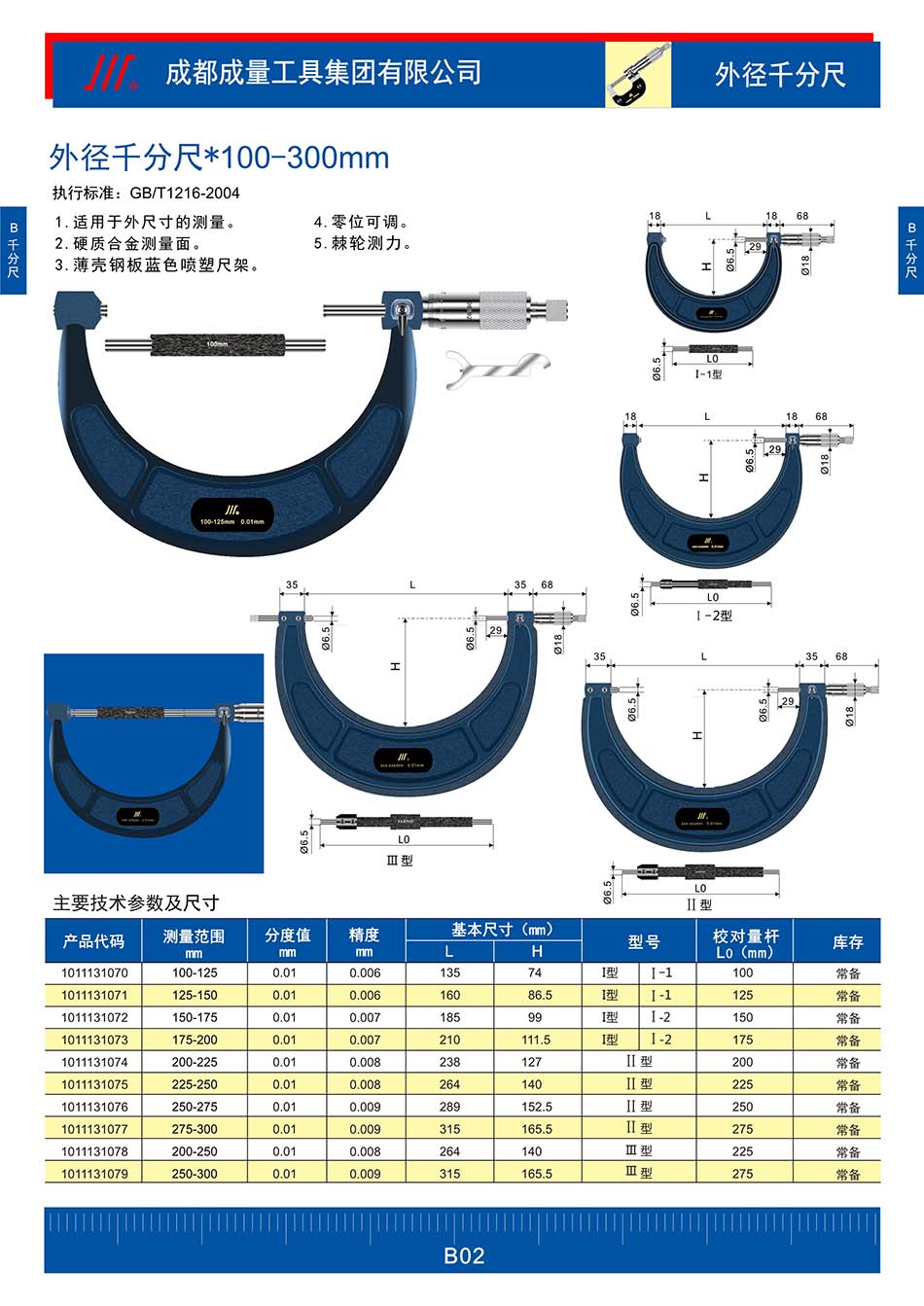 適用于外尺寸的測(cè)量。硬質(zhì)合金測(cè)量面。薄殼鋼板藍(lán)色噴塑尺架。