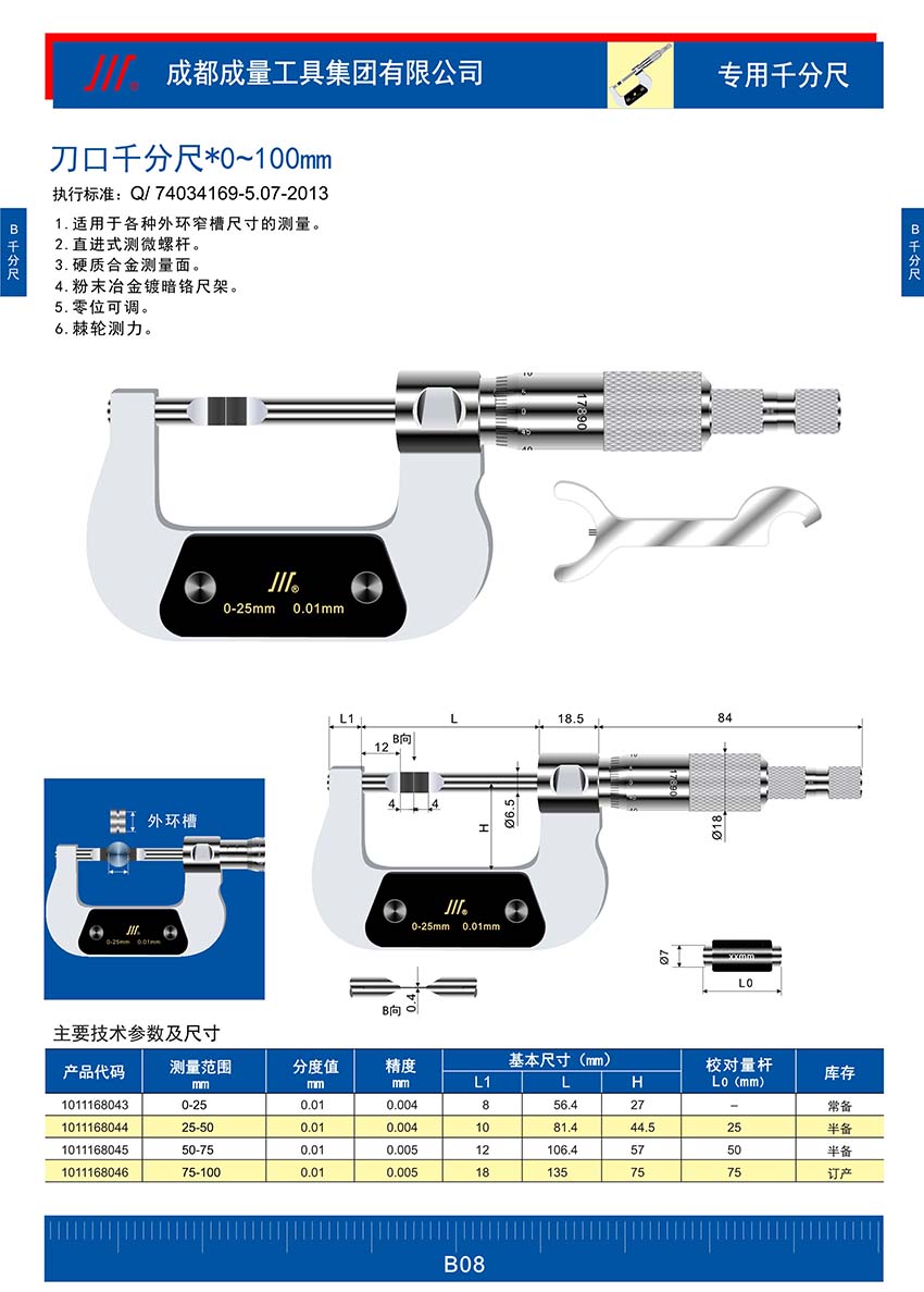 成量刀口千分尺75-1001011168046規(guī)格參數(shù)Specs
