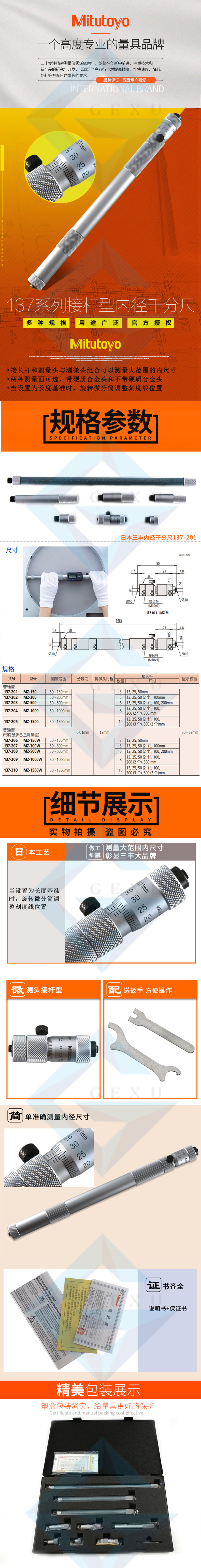 內(nèi)徑千分尺接桿式(合金頭)137-209,IMZ-1000測量50-1000mm包裝清單Detail