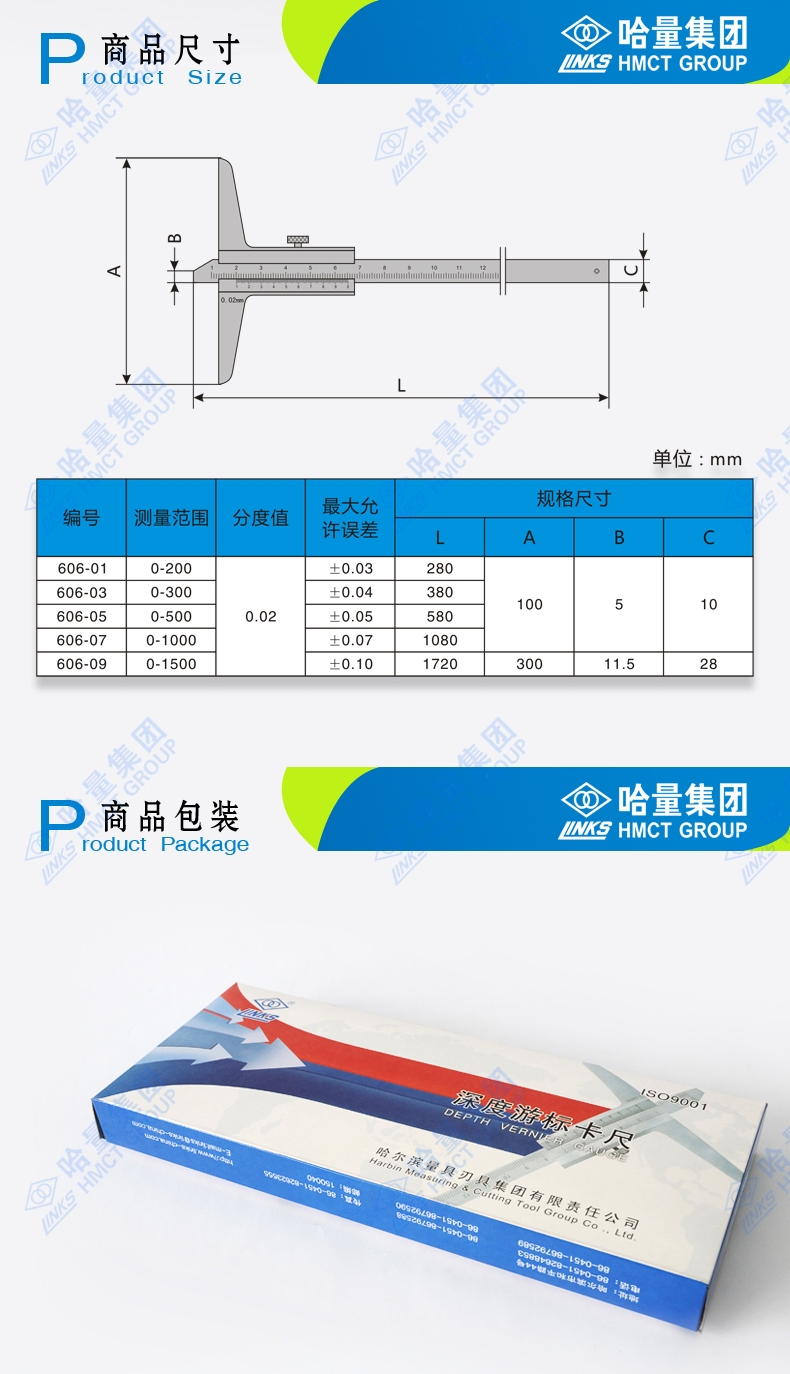 哈量深度游標(biāo)卡尺606系列 0-300mm 606-03包裝清單Detail