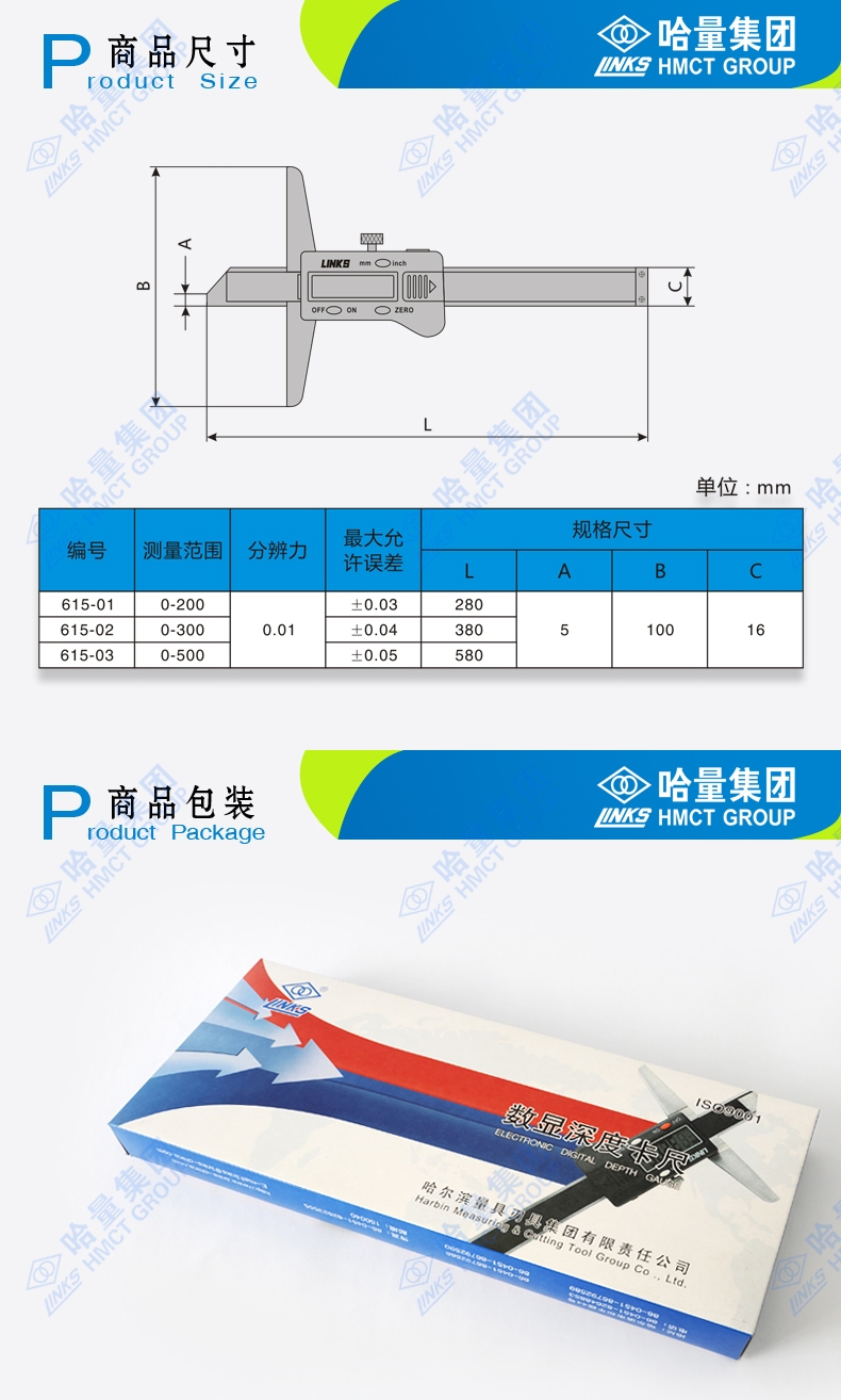 哈量電子數(shù)顯深度卡尺615系列 0-200mm 615-01包裝清單Detail